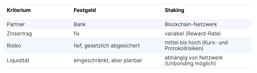 Festgeld und Staking im Vergleich