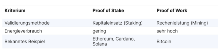 Unterschied Proof of Stake (PoS) und Proof of Work (PoW)
